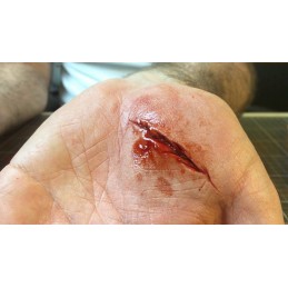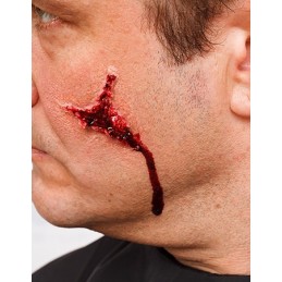 5. lépés - Add hozzá a Kryolan FX Blood-ot (művért) a seben belül, és hagyjuk csepegni, folyni (a természetesség kedvéért) ha szükséges.