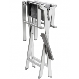 Professional chair for make-up and beauty assignments. Foldable and portable for location services. Exceptionally strong and well thought-out, with particular attention to details. The Aluminum Make-up Chair is extremely light and handy. This chair is recommended for frequent travel. Technical details: Anodized aluminum, wooden footrest with grooves to prevent slipping, seat and back made of PVC. Hand-crafted, with a long service life.