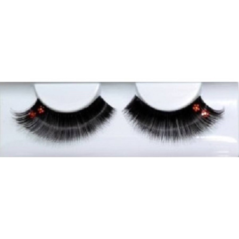 A sűrűn csomózott, mélyfekete szempillák ragyogó virágokkal, és mini flitterekből készült strasszokkal látványos megjelenést adnak az aranyban és az ezüstben. Az eredmény: volumenes megjelenés romantikus, csillogó érintéssel. Mintha egy másik galaxisról származnának ezek a szempillák. A hosszabbítás mellett élénk színű, kis, sárga, és rózsaszín hajszálakat csillogó, irizáló szálakkal kombinálják, hogy extravagáns szempillákat készítsenek a különleges pillanatokra. 100% kézzel készített.