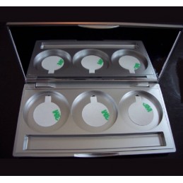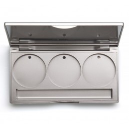 A Kryolan üres tükrös műanyag palettája. A palettát 3 színhez tervezték – (szemszínező utántöltő, Dermacolor Light) A termék elegáns, tartós műanyagból készült. Az alapozó tégelyek könnyedén beragaszthatók a helyükre, és ugyan ilyen könnyen eltávolíthatók. A palettában elhelyezhető egy kis ecset, vagy applikátor. A paletta könnyen tisztán tartható. A KRYOLAN logó megtalálható a fedélen.