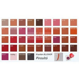 A Blusher krémes, sajtolt por pirosító, száraz alkalmazásra. A kivételes összetétel fokozza a finom alkalmazást és kellemesen puha, bársonyos érzést kelt a bőrön. A mikronizált pigmentek lehetőséget nyújtanak arra, hogy ezt a készítményt ne csak divatos átláthatósággal, hanem élénk, intenzív színfókusz mellett is alkalmazzák.