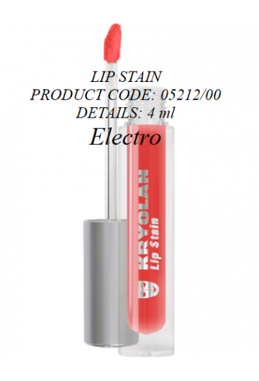 Lip Stain Folyékony rúzs Termékkód: 05212/00 Mennyiség: 4 ml A Lip Stain egy matt, intenzív színvilágú, tartós és nem kenődő folyékony rúzs. Az egyszerű eltávolításhoz használja a Kryolan Eye Make-up Remover-t.